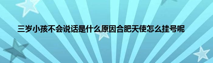 大家好,三岁小孩不会说话是什么原因合肥天使怎么挂号呢很多人还不知道,现在让我们一起来看看吧!