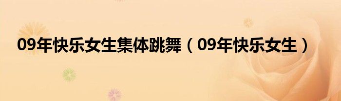 大家好,小问来为大家解答以上问题。09年快乐女生集体跳舞,09年快乐女生这个很多人还不知道,现在让我们一起来看看吧!