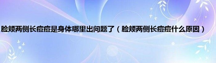本文,脸颊两侧长痘痘是身体哪里出问题了,脸颊两侧长痘痘什么原因到此就分享完毕,希望对大家有所帮助。