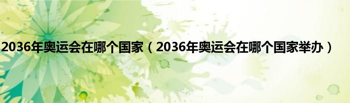 大家好,小问来为大家解答以上问题。2036年奥运会在哪个国家,2036年奥运会在哪个国家举办这个很多人还不知道,现在让我们一起来看看吧!