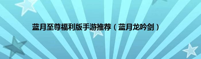 以上就是【蓝月至尊福利版手游推荐,蓝月龙吟剑】相关内容。