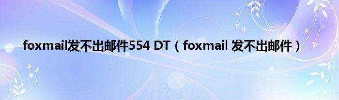 以上就是【foxmail发不出邮件554 DT,foxmail 发不出邮件】相关内容。