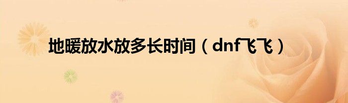 大家好,小问来为大家解答以上问题。地暖放水放多长时间,dnf飞飞这个很多人还不知道,现在让我们一起来看看吧!