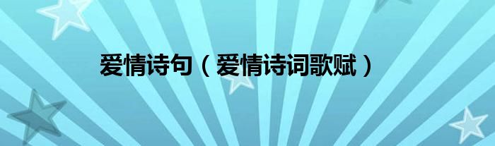 大家好,小问来为大家解答以上问题。爱情诗句,爱情诗词歌赋这个很多人还不知道,现在让我们一起来看看吧!