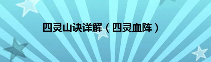 大家好,小问来为大家解答以上问题。四灵山诀详解,四灵血阵这个很多人还不知道,现在让我们一起来看看吧!