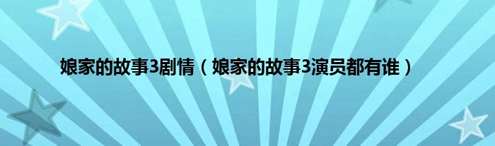 本文,娘家的故事3剧情,娘家的故事3演员都有谁到此就分享完毕,希望对大家有所帮助。