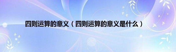 本文,四则运算的意义,四则运算的意义是什么到此就分享完毕,希望对大家有所帮助。