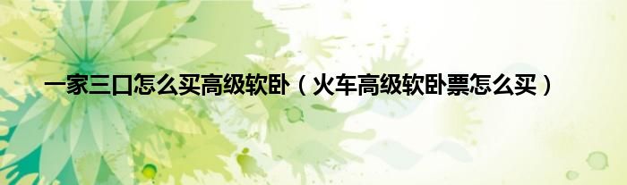 大家好,一家三口怎么买高级软卧,火车高级软卧票怎么买很多人还不知道,现在让我们一起来看看吧!