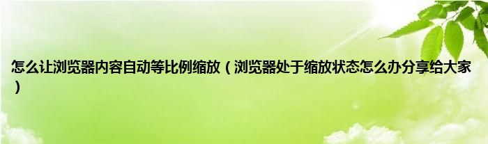 本文,怎么让浏览器内容自动等比例缩放,浏览器处于缩放状态怎么办分享给大家到此就分享完毕,希望对大家有所帮助。