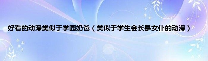 大家好,好看的动漫类似于学园奶爸,类似于学生会长是女仆的动漫很多人还不知道,现在让我们一起来看看吧!