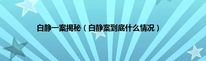 大家好,白静一案揭秘,白静案到底什么情况很多人还不知道,现在让我们一起来看看吧!