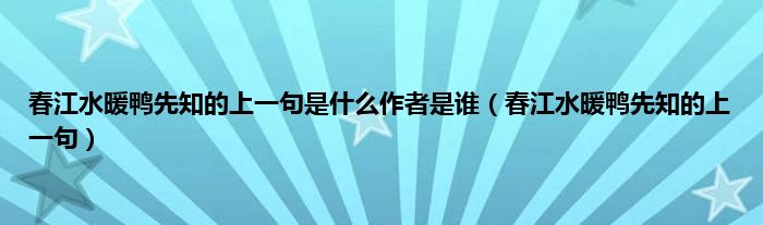 大家好,春江水暖鸭先知的上一句是什么作者是谁,春江水暖鸭先知的上一句很多人还不知道,现在让我们一起来看看吧!