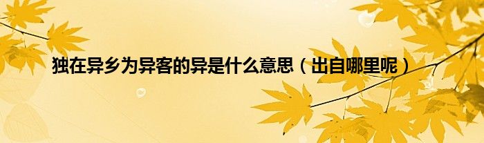 欢迎观看本篇文章,小升来为大家解答以上问题。独在异乡为异客的异是什么意思,出自哪里呢很多人还不知道,现在让我们一起来看看吧!