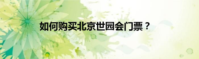 大家好,如何购买北京世园会门票?很多人还不知道,现在让我们一起来看看吧!