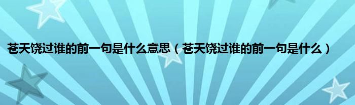 本文,苍天饶过谁的前一句是什么意思,苍天饶过谁的前一句是什么到此就分享完毕,希望对大家有所帮助。