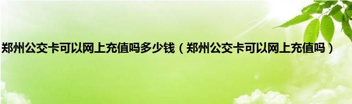 本文,郑州公交卡可以网上充值吗多少钱,郑州公交卡可以网上充值吗到此就分享完毕,希望对大家有所帮助。