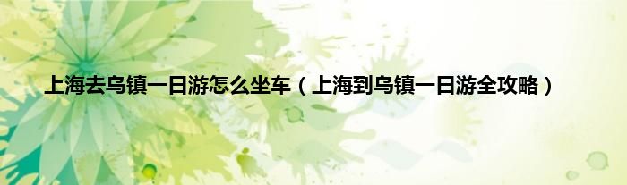 本文,上海去乌镇一日游怎么坐车,上海到乌镇一日游全攻略到此就分享完毕,希望对大家有所帮助。