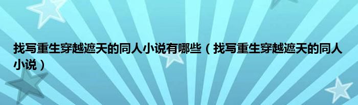 本文,找写重生穿越遮天的同人小说有哪些,找写重生穿越遮天的同人小说到此就分享完毕,希望对大家有所帮助。