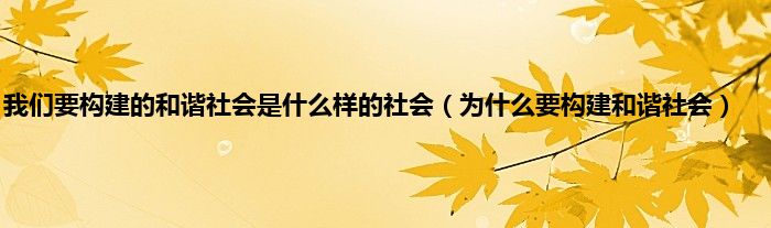 我们要构建的和谐社会是什么样的社会(为什么要构建和谐社会)